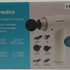 The Homedics Therapist Select Prime Plus Percussion Massager is engineered for deep, targeted relief. With 6 interchangeable massage heads and 6 intensity levels, this massager customizes your experience to relieve muscle soreness and promote recovery. Its high-torque motor delivers powerful percussion, ideal for post-workout use or daily relaxation.