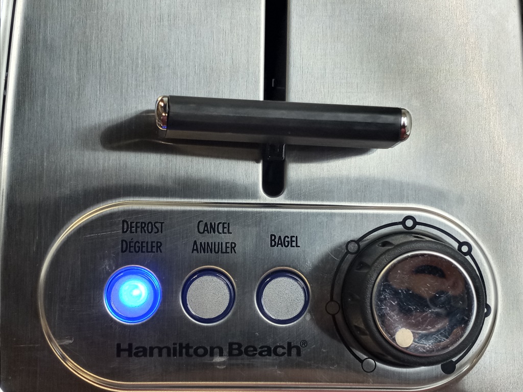 Functions: Defrost, Bagel, Cancel with LED indicators