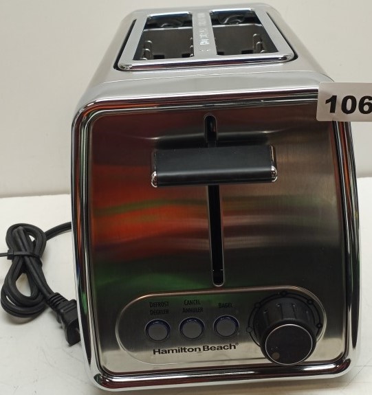 Start your mornings right with the Hamilton Beach 2-Slice Toaster, crafted with sleek stainless steel and smart features for a perfect toast every time. Model 22791C features extra-wide slots for bagels, thick breads, or frozen waffles, while the illuminated function buttons offer easy access to Defrost, Bagel, and Cancel options.