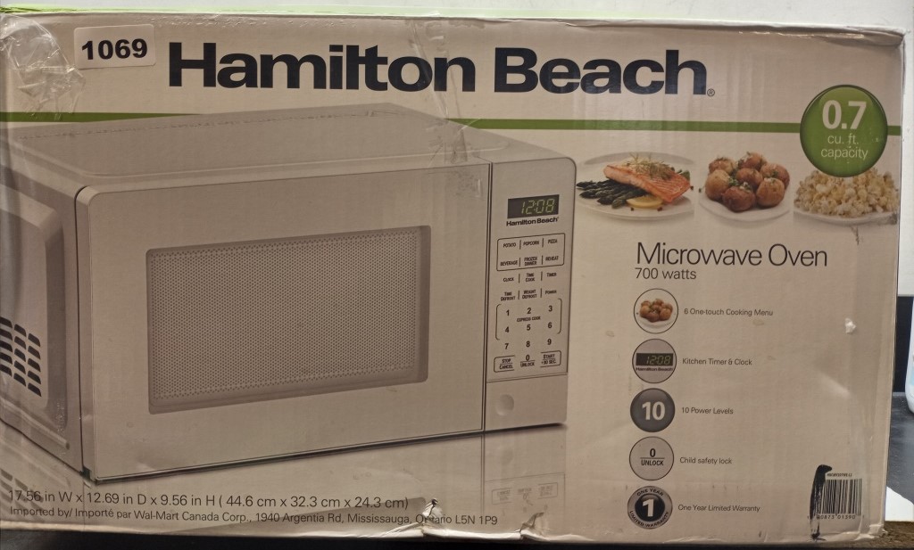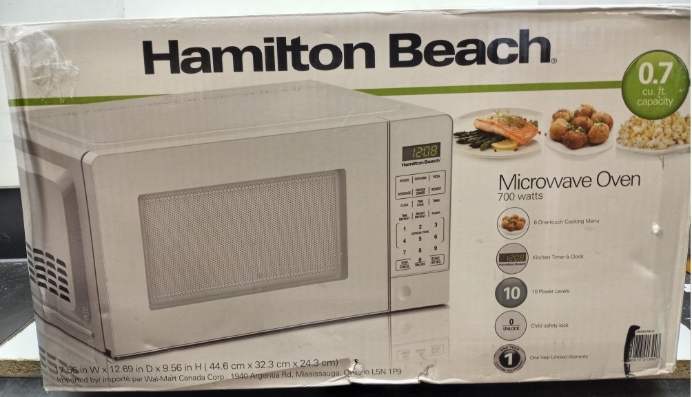 Upgrade your kitchen convenience with the Hamilton Beach 0.7 cu. ft. Microwave Oven. Featuring a compact footprint and 700 watts of power, this microwave is perfect for dorms, apartments, or small kitchens. With 6 one-touch cooking presets, 10 adjustable power levels, and an easy-to-read digital display, you can prepare snacks, meals, and beverages with precision and ease. Includes a child safety lock and kitchen timer for added peace of mind.