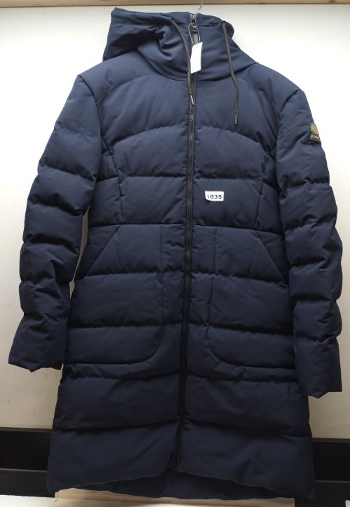 Brave the cold in refined Canadian craftsmanship with this Kanuk women’s hooded winter coat in deep navy. Made in Canada, this medium-size coat blends timeless design with high-performance insulation to keep you warm and stylish in harsh climates.