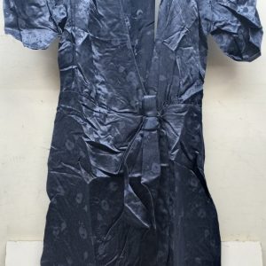 Elevate your evening style with this stunning The Kooples Navy Mandarine Jacquard Dress, crafted from luxurious jacquard fabric with subtle glossy patterns. Designed with puffed sleeves, a deep V-neckline, and a belted waist for a flattering silhouette, this dress is both elegant and edgy. The structured shoulders and mid-length hemline add sophistication to your look, perfect for formal dinners or upscale parties. Made in high-quality fabric, it drapes beautifully with a soft sheen.